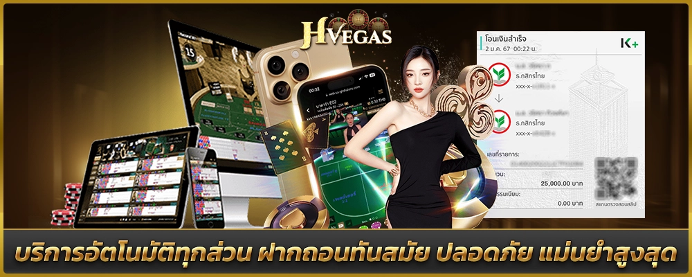 สิ่งที่โดดเด่นที่สุดของ HVEGAS คือระบบฝาก-ถอนอัตโนมัติที่ทำงานได้อย่างรวดเร็วและแม่นยำ เงินเข้าบัญชีภายในไม่กี่วินาทีหลังจากทำรายการ ไม่ต้องแจ้งสลิปหรือรอแอดมินตรวจสอบให้เสียเวลา นอกจากนี้ยังรองรับการทำธุรกรรมผ่านธนาคารชั้นนำทุกแห่ง รวมถึง True Money Wallet ทำให้สะดวกมากสำหรับผู้เล่นที่ต้องการความคล่องตัวในการจัดการเงิน
